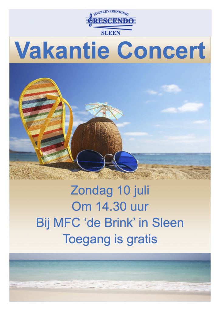 Muziekvereniging Crescendo Sleen organiseert zondag 10 juli een vakantieconcert.